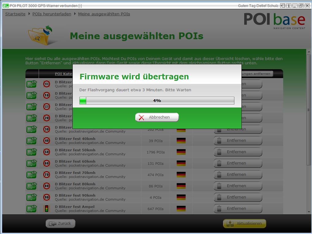 The receiver can be easily placed in the vehicle. When approaching a speed camera, or possibly standing there Blitzer, Warner then emits an audible beep. With one battery charge the internal battery holds about nine hours and can be an included car charger (mini USB) charge at any time. The data updates to the Pilot 3000 GPS POI Warner you get five years for free.