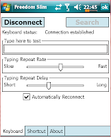 I write this review now using the Freedom Slim Bluetooth Keyboard, I am sitting comfortably on my couch and write fluently and well with the Freedom Slim Keypad. My Pocket PC is on the table and I can quite comfortably follow the text on the display. The transfer is fast and without error. The maximum distance that I had reached 8 meters.
