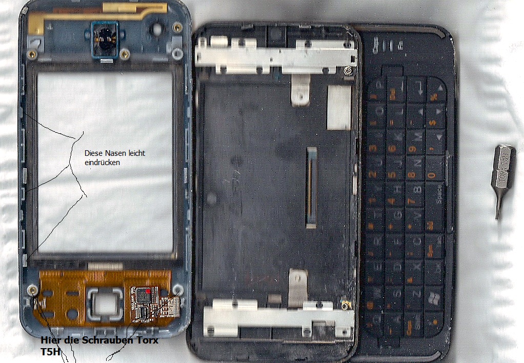 remove the screws with a Torx previously T5H, battery out, unscrew two screws down (towards the USB) out.